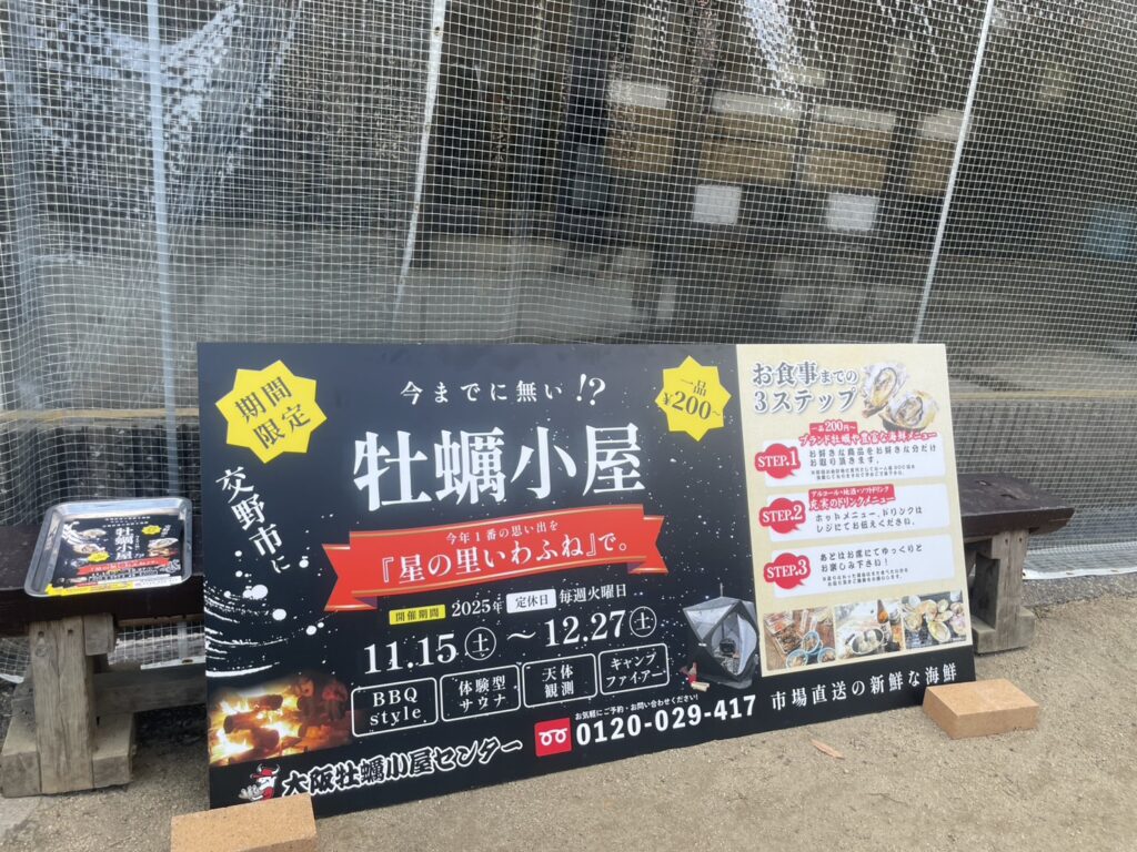 炭火で楽しめる移動出店型の本格牡蠣小屋で