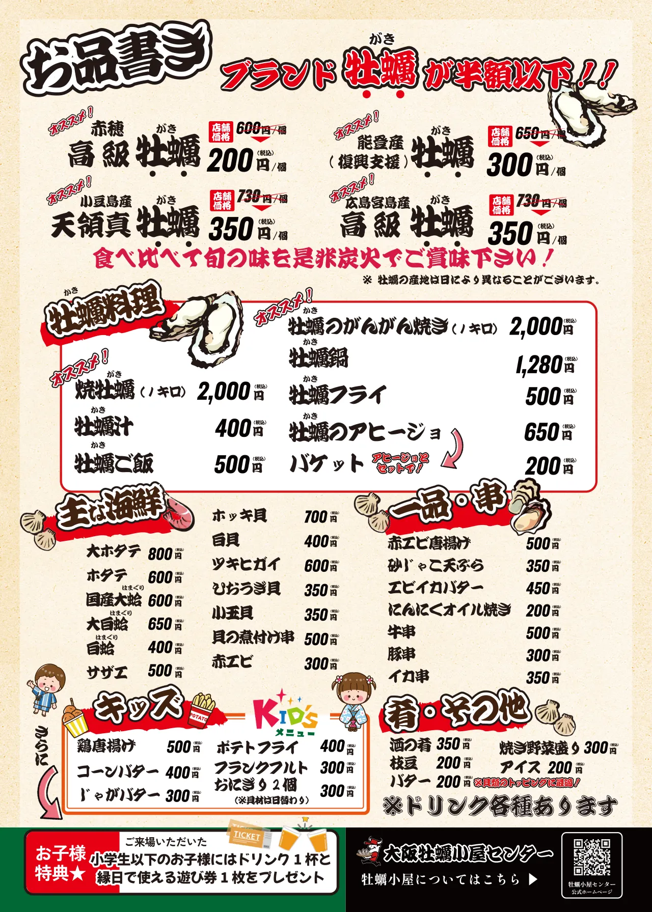 赤穂の高級牡蠣や小豆島産の高級牡蠣などがリーズナブルに楽しめます!!