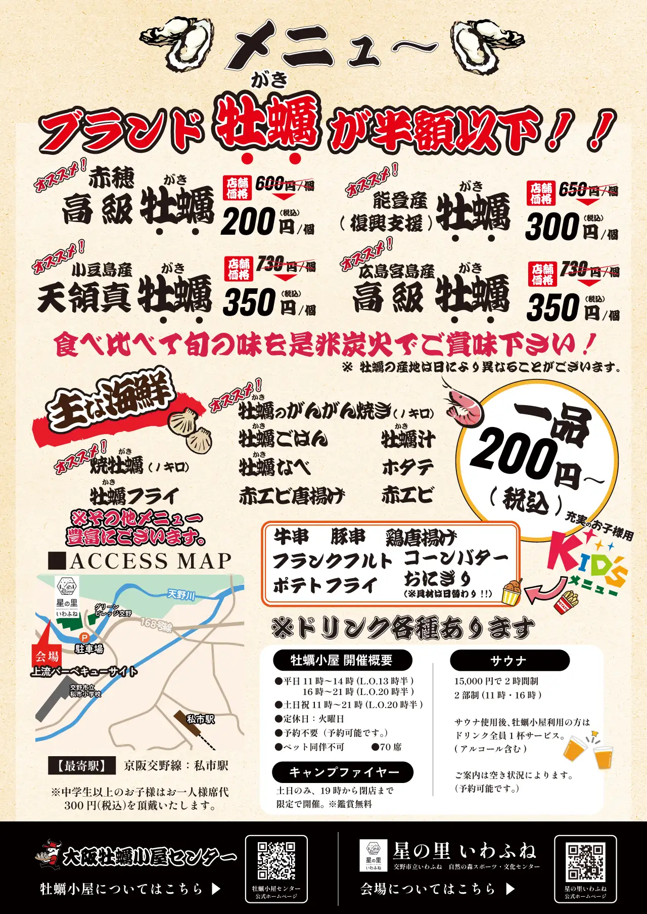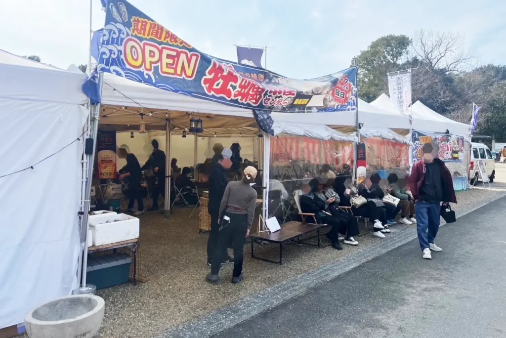 炭火で楽しめる移動出店型の本格牡蠣小屋で
