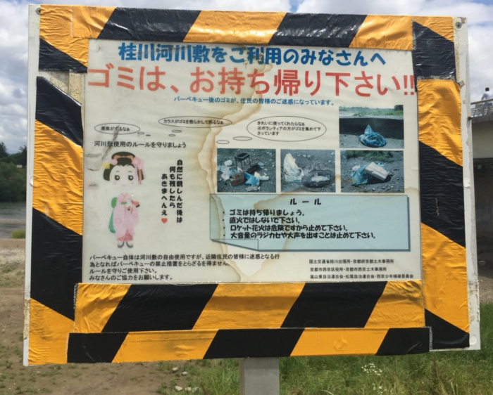 桂川河川敷だけではなく、無料バーベキュー場は今はほとんどって言っても過言ではないのですがバーベキュー後のゴミなどは全て各自で持ち帰る事になっています。