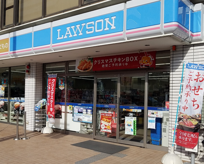 改札を出て会場に向かう途中のローソン西中島南方店です。ドリンク類など少量の買出しならこちらをご利用下さい。