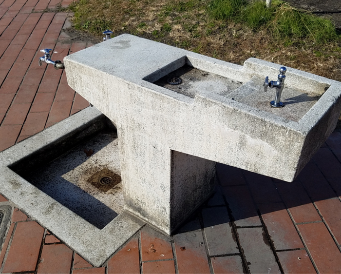 バーベキューエリアの水道になります。園内に2箇所設置されています。※コンロや食器など洗い物はご遠慮下さい。