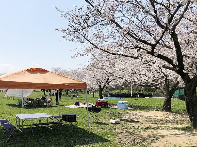 住吉公園は駅近でお花見バーベキューの人気のスポットです。バーベキュー可能エリアが狭いのがネックですが花見シーズンにはソメイヨシノがきれい に咲くおすすめBBQスポットです。