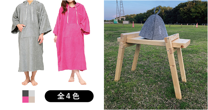 | 【セット内容】 | ・ポンチョ ダークグレー,ライトグレー ピンク、カーキ(全4色) ・サウナハット |