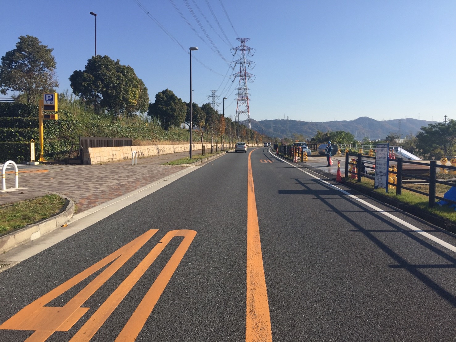 パーキングに到着!!奥の方がバーベキューエリアに近くなります。多目的広場が臨時の駐車場として開放されている際は臨時駐車場がエリアに近くなります。